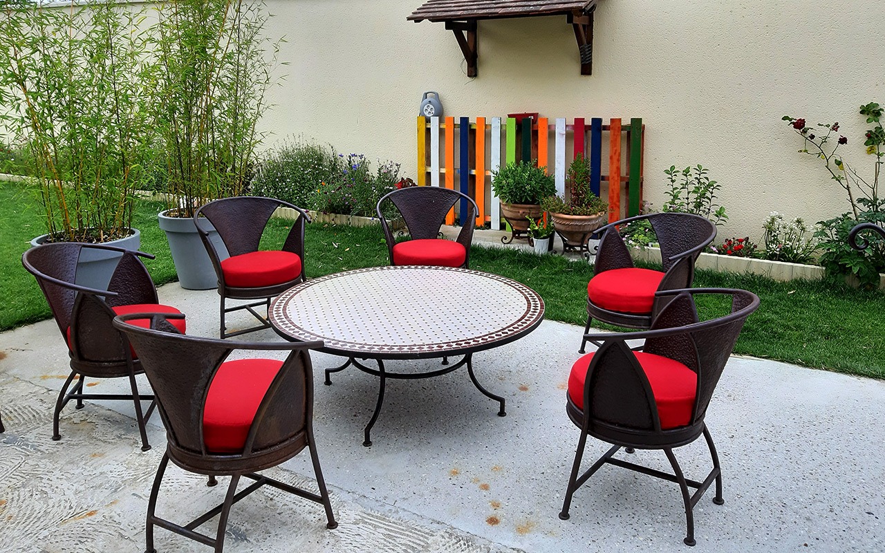 Nous créons du mobilier en fer forgé plein sur mesure, associé à des matériaux nobles tels que le bois, le marbre, le verre ou la terre cuite. Chaque pièce est pensée comme une œuvre fonctionnelle, au service de votre confort et de l’ambiance que vous souhaitez créer.